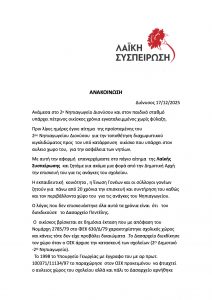Σχετική είναι και η ανακοίνωση της παράταξης: