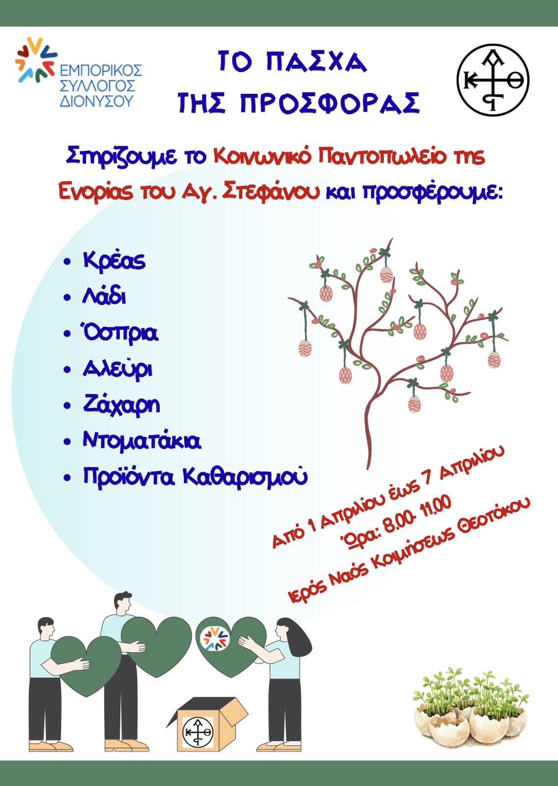 Οι Άγιες Ημέρες του Πάσχα πλησιάζουν και η σκέψη όλων μας στρέφεται στους συνανθρώπους μας που έχουν την ανάγκη μας.