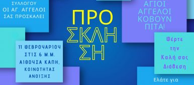 Την Κυριακή 11/2/2024 στις 6μμ θα μαζευτούμε στην αίθουσα των ΚΑΠΗ Άνοιξης, να σας ευχηθούμε, να συζητήσουμε, να κόψουμε τη βασιλόπιτα, και να σχεδιάσουμε τα επόμενα βήματα για εμά[...]