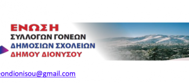 Την Πέμπτη 11 Σεπτεμβρίου το πρωί θα πραγματοποιηθεί ο αγιασμός στα σχολεία του Δήμου Διονύσου- με τη διαφορά πως από το σχετικό προγραμματισμό λείπει μια ολόκληρη σχολική μονάδα, [...]