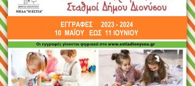 ΑΝΑΚΟΙΝΩΣΗ Αγαπητοί γονείς, Σας ενημερώνουμε ότι οι εγγραφές των νηπίων και βρεφών στους Παιδικούς και Βρεφονηπιακούς σταθμούς του Ν.Π.Δ.Δ ΚΟΙΠΑΠ «Η ΕΣΤΙΑ» του Δήμου Διονύσου, για [...]